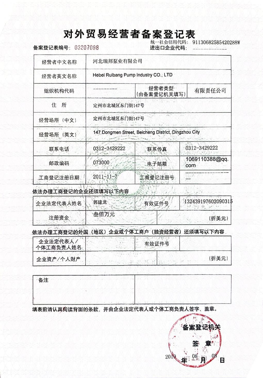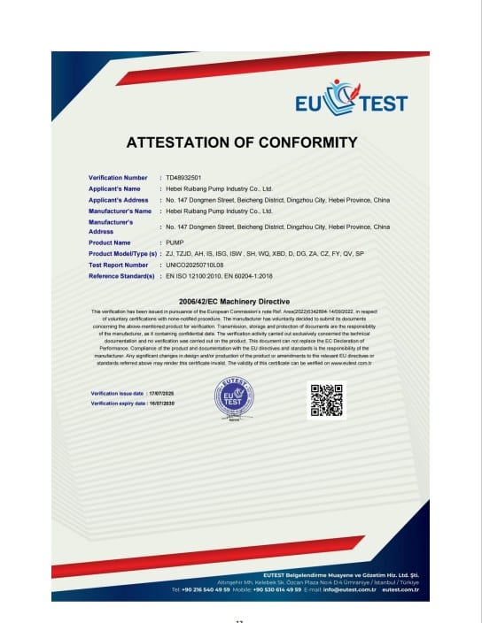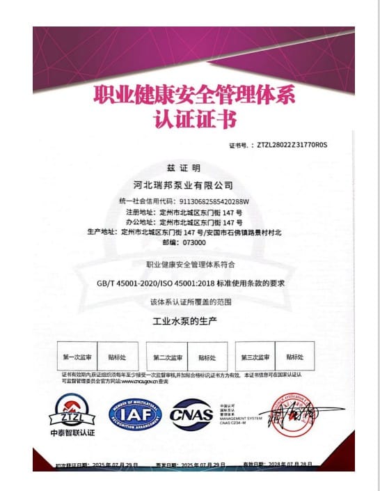 Hebei Ruibang Pump Industry Co., Ltd., established in 2011 and located in Dingzhou City, Hebei Province, China, is a professional industrial pump manufacturer specializing in the design, research and development, and production of fluid engineering equipment. With many years of experience in mechanical manufacturing and pump R&D and production, the company has grown into one of the top ten pump manufacturers globally, with a strong market presence in over 120 cities in China and exporting products to more than 80 countries and regions worldwide.
